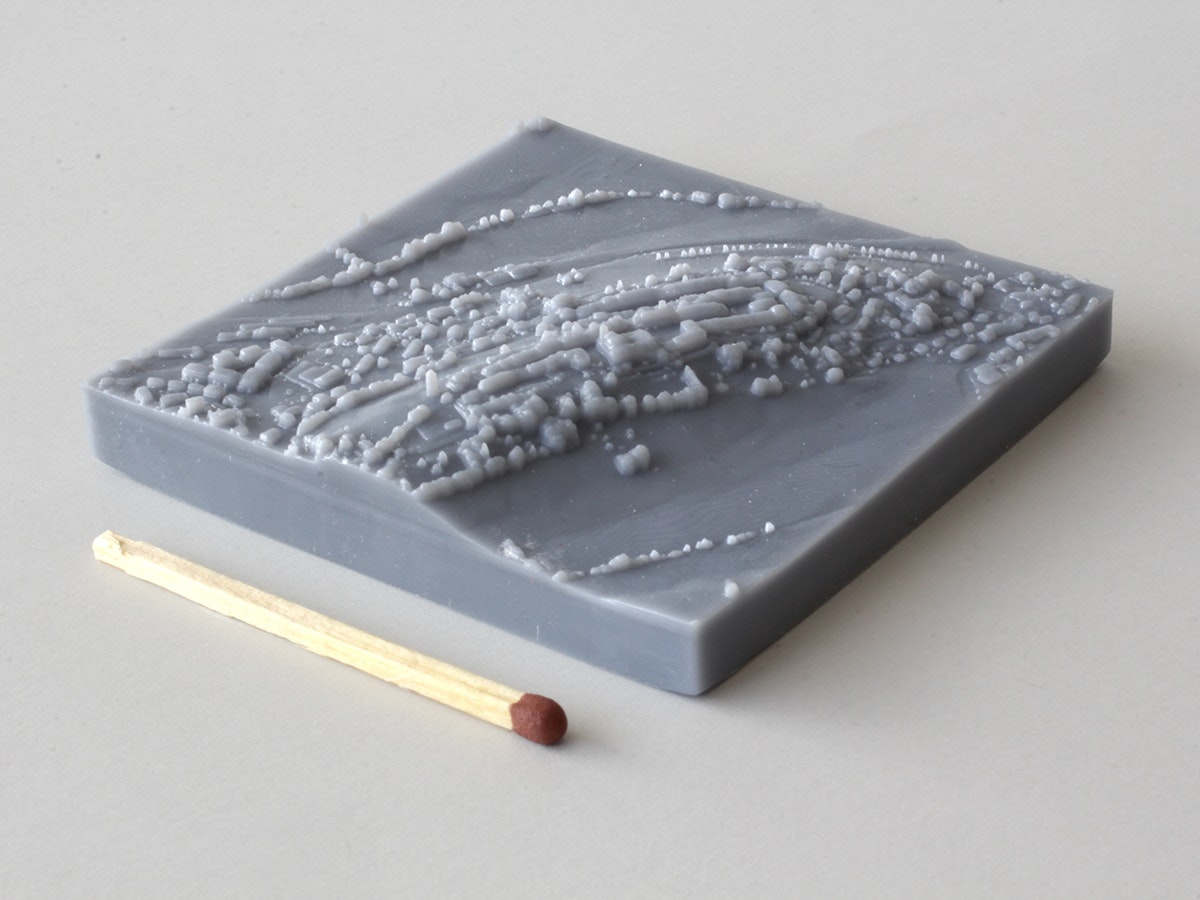Verschiedene Druckverfahren ermöglichen die Erstellung von räumlichen physischen Modellen mittels 3D-Drucker. Digitale Geodaten können damit in ein analoges 3D-Modell umgesetzt werden.