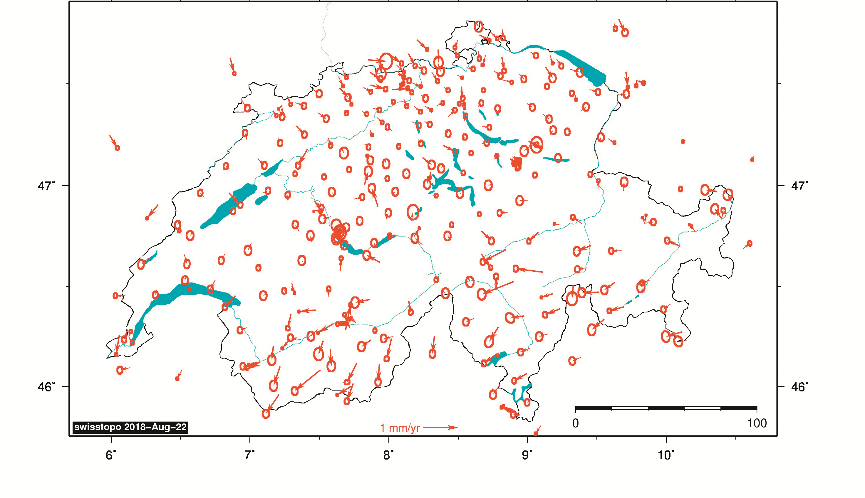 Die Messdaten der schweizerischen Landesvermessung werden mit Daten der Nachbarländer kombiniert. Dies lässt Aussagen zu über die Stabilität des Fixpunktnetzes und darüber, wo und wie stark die Schweiz tektonischen Veränderungen – zum Beispiel der Alpenhebung – unterliegt.