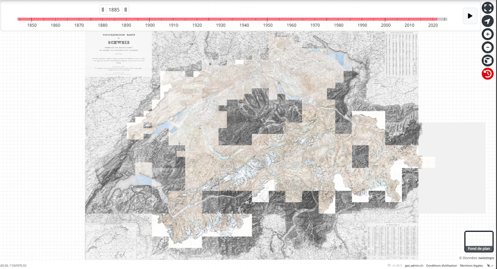 Entdecken Sie mit den alten Siegfried-, Dufour und Landeskarten das historische Erbe der Schweiz und visualisieren Sie dieses bis in die Zeit der modernen Kartografie.