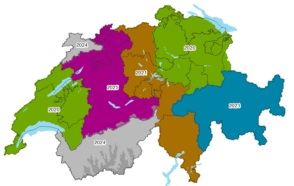Im Bereich grösserer Flüsse und Seen werden zur Verbesserung der Wasseroberflächendarstellung Gewässervektoren aus dem topografischen Landschaftsmodell hinzugezogen.
