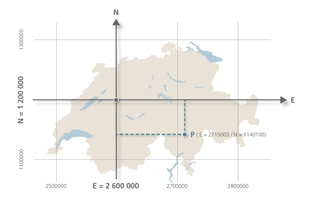 In der Schweiz werden meistens die offiziellen Schweizer Koordinaten der Landesvermessung 1995 verwendet. Daneben gibt es weltweit gültige Koordinaten wie jene des World Geodetic System WGS84 mit Längen- und Breitengraden. Das ist ein globales Referenzsystem für die Geodäsie und Navigation.