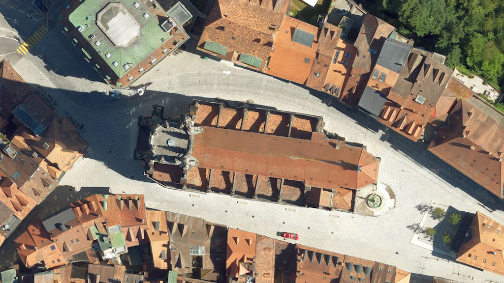 Ab 2026 wird SWISSIMAGE zu einer True-Orthophoto. Die neuen Orthofotos sind nun vollständig von geometrischen Verzerrungen korrigiert, einschliesslich jener, die durch Objekte oberhalb des Bodens verursacht werden. Besonders deutlich ist die Veränderung bei Gebäuden: Jedes Gebäude wird in einer echten Orthogonalprojektion, also vollkommen senkrecht dargestellt, ohne Verzerrungen und Überkippen, was angrenzende Strassen verdecken könnte.