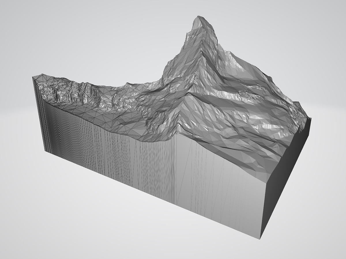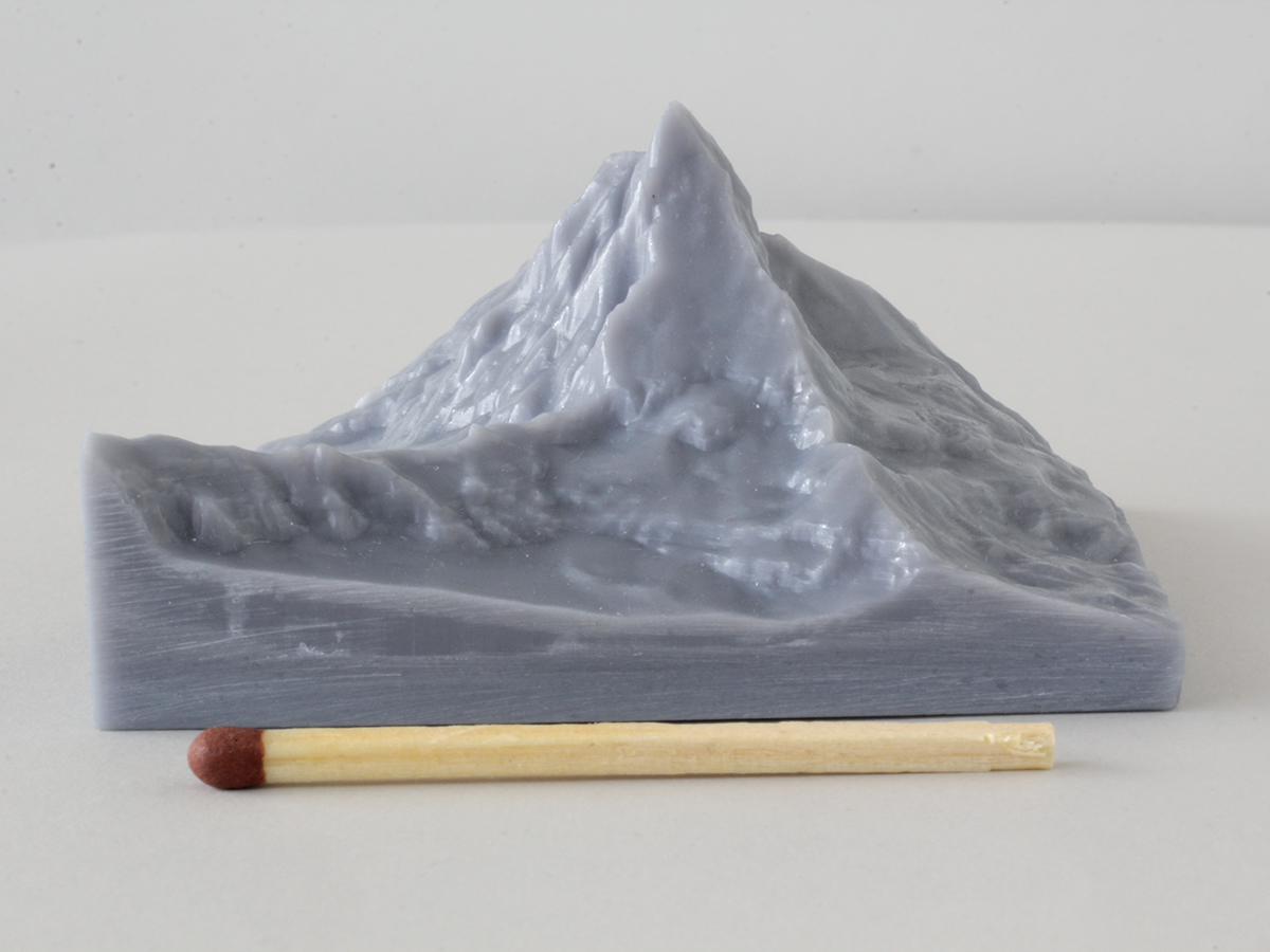 As an example, you can print the Matterhorn at any scale. To do this, use the sample data converted from the product swissALTI3D and DHM25 in STL format.