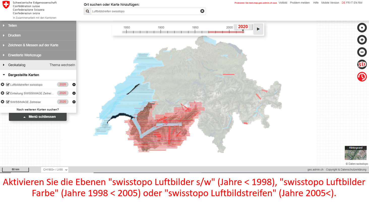Go on a fascinating journey and travel back in time with the help of aerial images from swisstopo. Discover the history of Switzerland’s landscape as seen from the air.