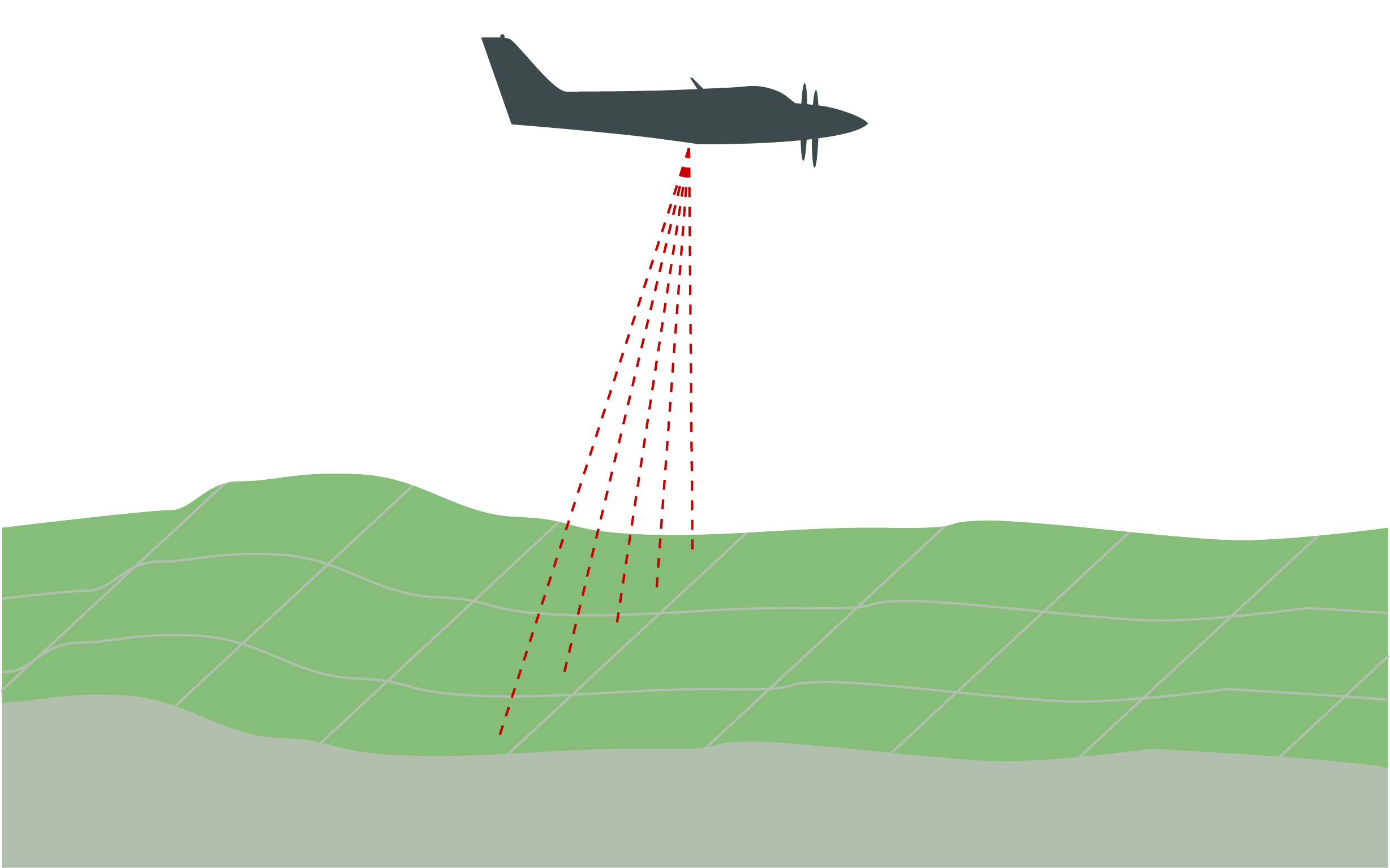 - le balayage laser aéroporté, depuis un avion ou un hélicoptère.