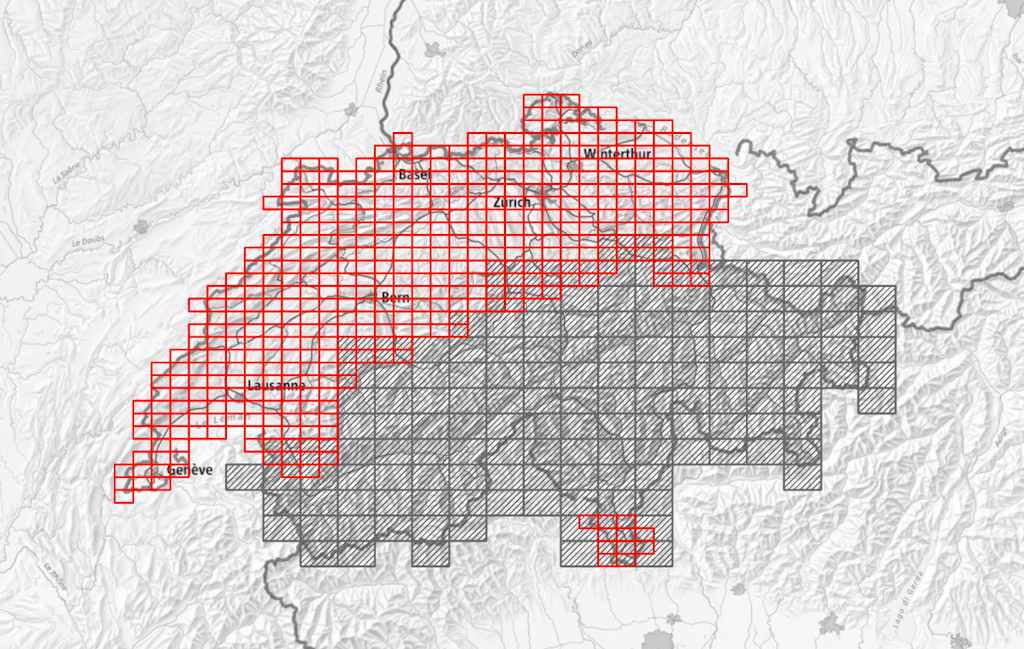 Les couches "Carte Siegfried" et "Découpage carte Siegfried 25/50 Raster" sont disponibles dans le service de consultation WMS de l’infrastructure fédérale de données géographiques (IFDG).