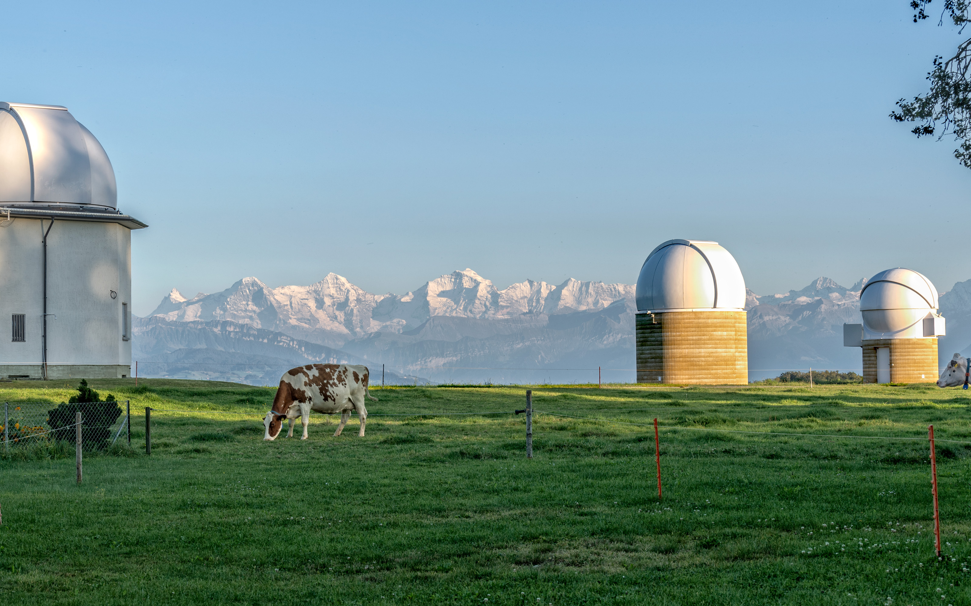 Sur une colline à proximité de Berne se dresse la géostation de Zimmerwald. C’est là qu’est situé le point fondamental de la mensuration nationale suisse. Des scientifiques y étudient le cosmos et reçoivent parfois des visites nocturnes. Il s’agit d’un lieu de travail offrant de belles perspectives.