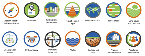 Le comité d’experts des Nations Unies sur la gestion mondiale de l’information géospatiale (UN-GGIM) s’est demandé très tôt quels jeux de géodonnées étaient nécessaires pour soutenir ces objectifs de développement durable (Agenda 2030). Il a ainsi réuni 14 jeux de géodonnées sous le titre de «Global Fundamental Geospatial Data Themes» (thèmes mondiaux de données géospatiales fondamentales) et les a publiés en 2019. Selon les Nations Unies, il s’agit là du minimum de données à référence spatiale dont un Etat a besoin.