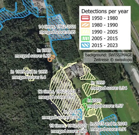 Dans le cadre de ce projet, le STDL a été sollicité par les Cantons du Tessin et de Vaud afin de développer une méthode de détection automatique de l’utilisation des sols au cours du temps. En particulier, on identifiera les sites ayant accueilli une activité anthropique. Ces zones peuvent être priorisées pour réhabilitation.