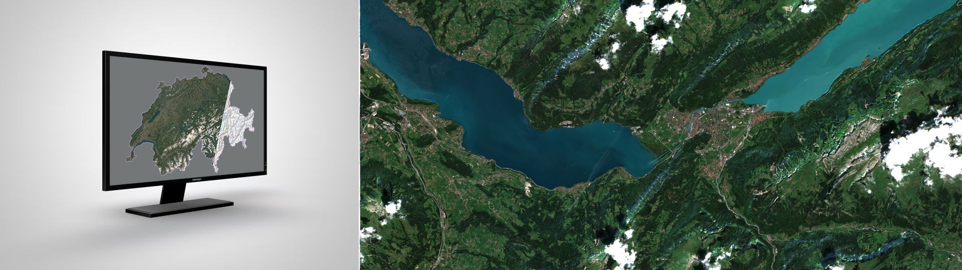 La Suisse est représentée par quatre orbites de survol des satellites (voir graphique ci-dessous). Les orbites qui se superposent donnent une image complète de la Suisse tous les trois à cinq jours environ. Cependant l'utilité des données dépend fortement des conditions météorologiques lors de la capture d'images, car le capteur d'enregistrement ne peut pas voir à travers les nuages. En plus de la localisation des données déjà appliquée, un co-enregistrement des données optimisé pour la Suisse est utilisé pour une précision de position sub-pixel et une projection dans un système de coordonnées uniforme est effectuée. Des couches de qualité optimisées sont également fournies avec des masques pour les nuages (et leures ombres) et les ombres topographiques.