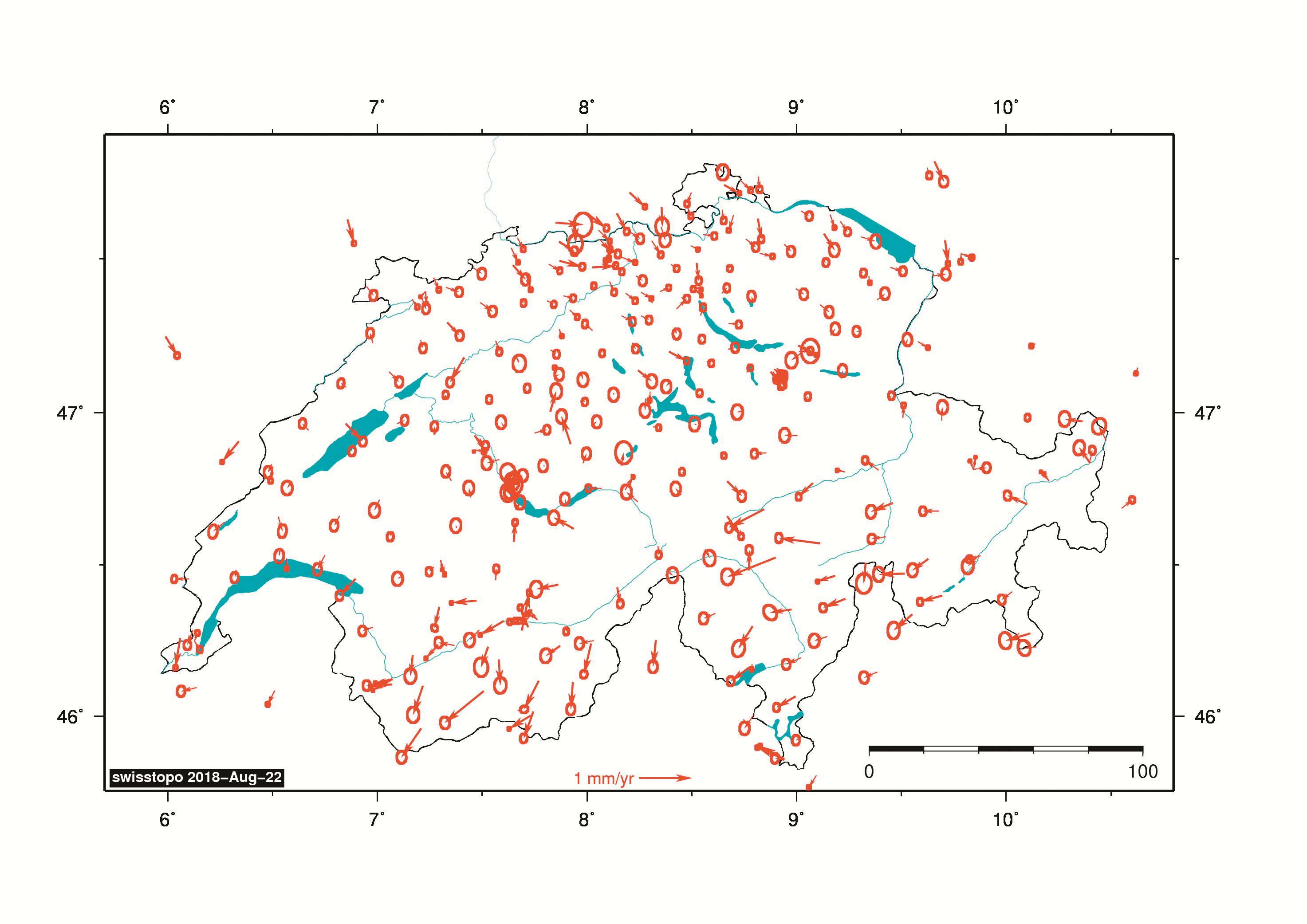 Les données recueillies par la mensuration nationale suisse sont combinées avec celles des pays voisins, permettant ainsi de tirer des conclusions sur la stabilité du réseau de points géodésiques et de savoir où et dans quelle mesure la Suisse est soumise à des modifications tectoniques, par exemple le soulèvement alpin.