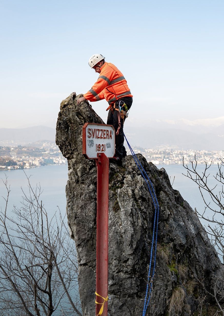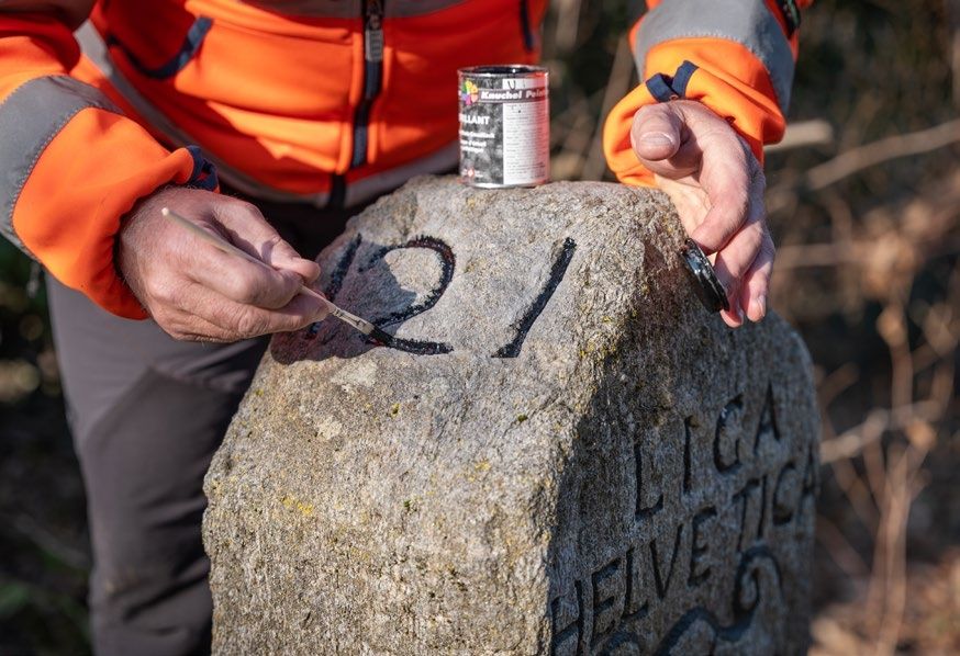 Alain Wicht traite ces questions au quotidien. En tant que préposé pour la frontière nationale auprès de l’Office fédéral de topographie swisstopo, il connaît les quelque 1935 kilomètres de la frontière nationale comme sa poche. Il remet en place les bornes disparues, les nettoie et les repeint. Il se déplace régulièrement le long de la frontière, escalade des sommets isolés et traverse de denses forêts afin de rendre visibles ces lignes invisibles qui séparent la Suisse de ses voisins. Au-delà de son travail sur le terrain, il reçoit régulièrement des délégations ou se rend dans les pays voisins de la Suisse pour traiter de questions relatives au tracé de la frontière.