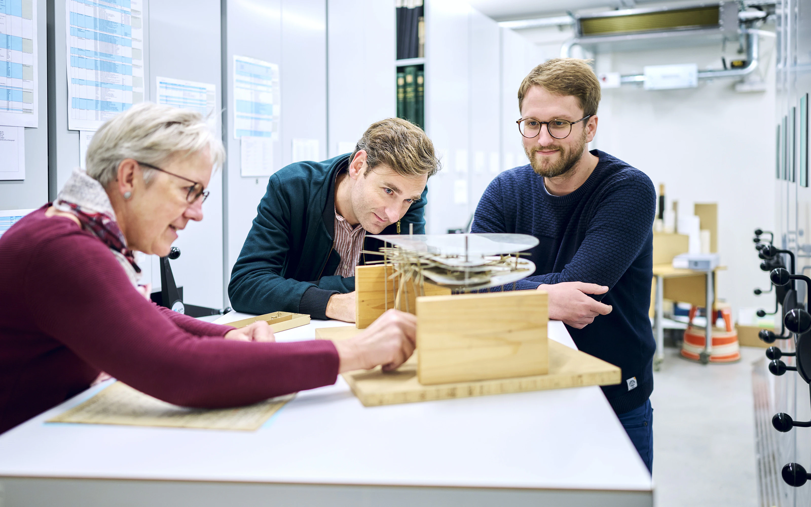 Cette époque marque un tournant fondamental pour l’Office fédéral de topographie: le début de la numérisation. Les collaboratrices et collaborateurs de swisstopo se sont plongés dans les archives pour documenter le passage de l’ère mécanique à l’ère numérique. «Pendant mes recherches, je suis tombée sur des objets intéressants», raconte la coordinatrice des archives, Beatrice Winter. Parmi eux, des cartes perforées en carton, qui comptent parmi les plus anciens dossiers informatiques et servaient à l’époque à stocker des données. La lecture d’anciens numéros du journal des collaborateurs de l’Office fédéral de topographie a également été très instructive pour les concepteurs de l’exposition. Ce journal relatait en détail l’utilisation des premiers calculateurs électroniques. Une chose est devenue claire: «Certaines personnes ont fait un travail de pionnier à l’époque», explique Felix Frey, qui a participé à la conception de l’exposition en tant qu’expert historique.
