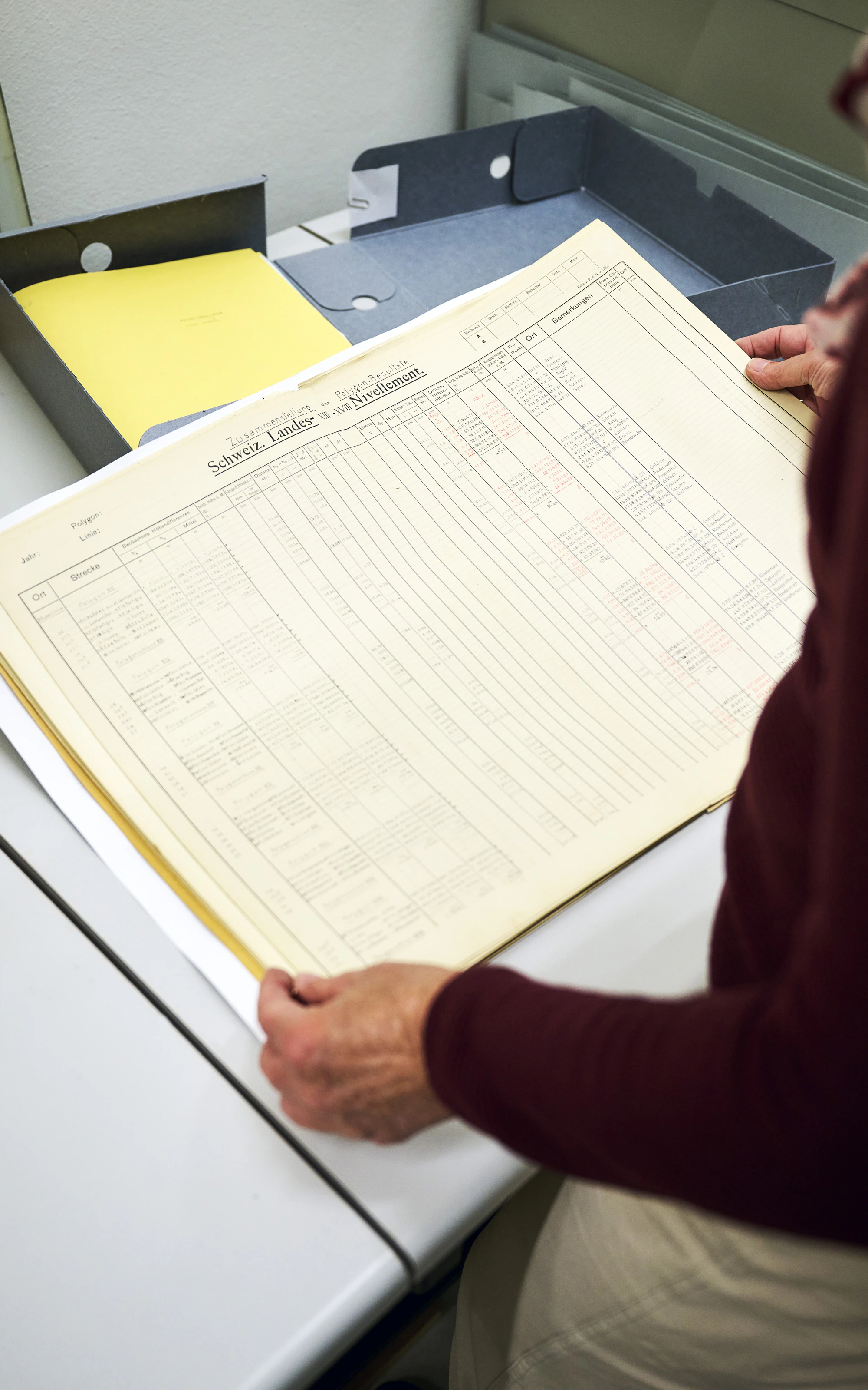 La mensuration nationale est un métier pour les têtes pensantes. Des spécialistes se débattent quotidiennement avec des données et des grandeurs mathématiques. «Autrefois, certaines personnes passaient des mois à ne faire que des calculs», explique Lukas Gerber, responsable du processus partiel «Histoire et archives» chez swisstopo. Autrefois, les calculs nécessaires à l’établissement d’une feuille de carte nécessitaient un travail intellectuel assidu, car il n’était pas possible de recourir à des ordinateurs. À la place, les collaboratrices et collaborateurs de l’Office fédéral de topographie utilisaient des instruments mécaniques, par exemple des cylindres ou des règles à calculer, et on créaient soi-même une machine de compensation mécanique. Ces outils de travail extraordinaires sont à découvrir dans une exposition en ligne de swisstopo qui met en lumière les progrès technologiques entre 1960 et 1980.