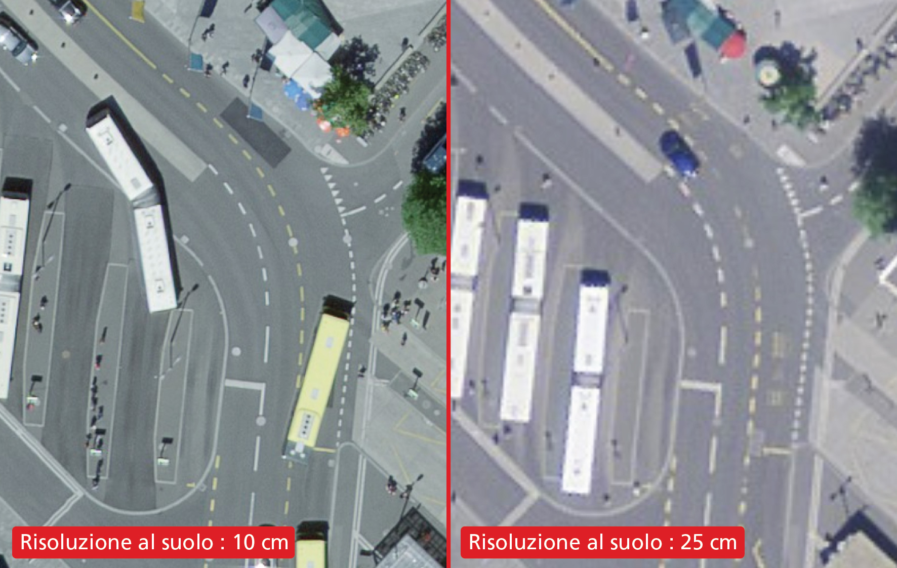 Ripartizione delle risoluzioni al suolo: 10 cm (in blu) e 25 cm (in verde) – con riserva di modifica