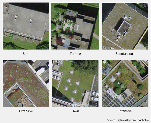 In collaborazione con gli esperti del settore dell'AWEL (Amt für Abfall, Wasser, Energie und Luft - Luft, Klima und Strahlung) del Cantone di Zurigo e dell'OCAN (Office cantonal de l'agriculture et de la nature) del Cantone di Ginevra, il problema è stato scomposto in due fasi consecutive: l'individuazione dei tetti vegetalizzati e la determinazione del tipo di vegetazione.