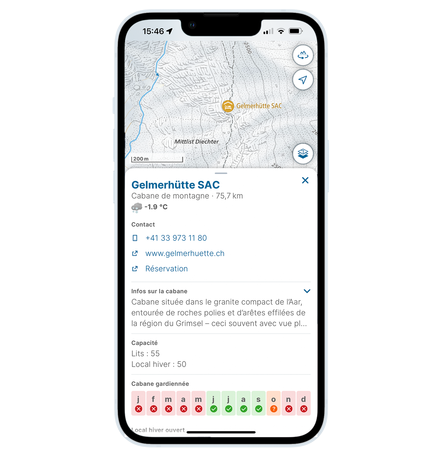 La Base Map, con le sue nuove possibilità di interazione, è il complemento ideale alle carte nazionali disponibili nell'App di swisstopo. Essa combina i dati di swisstopo con quelli delle organizzazioni associate. Così è possibile accedere a informazioni e dati in tempo reale o a dettagli di contatto direttamente dalla mappa grazie a elementi interattivi come i punti di interesse (POI).