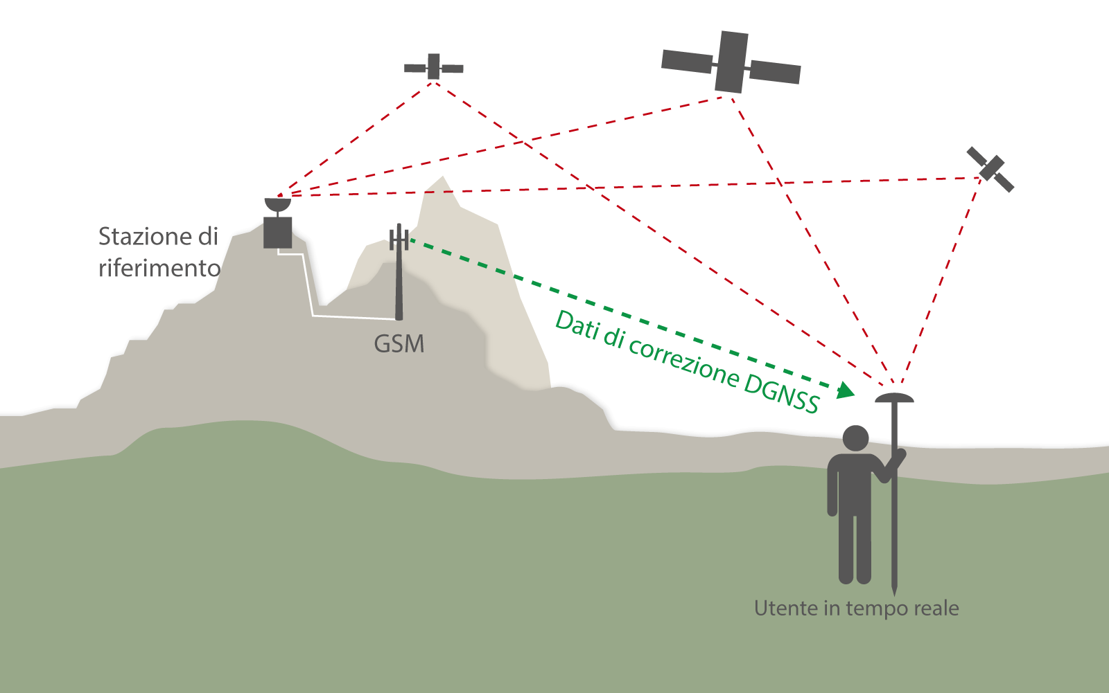 Il segnale GNSS attraversa l'atmosfera terrestre nel tragitto dal satellite al ricevitore. A causa del clima, l'atmosfera ha spesso proprietà diverse in una piccola area. Ciò modifica il tempo di propagazione del segnale. Includendo stazioni con coordinate note, le cosiddette stazioni di riferimento, è possibile calcolare questi errori. I dati utilizzati a questo scopo sono quindi chiamati dati di correzione. Il loro utilizzo aumenta quindi la precisione della misurazione della posizione.