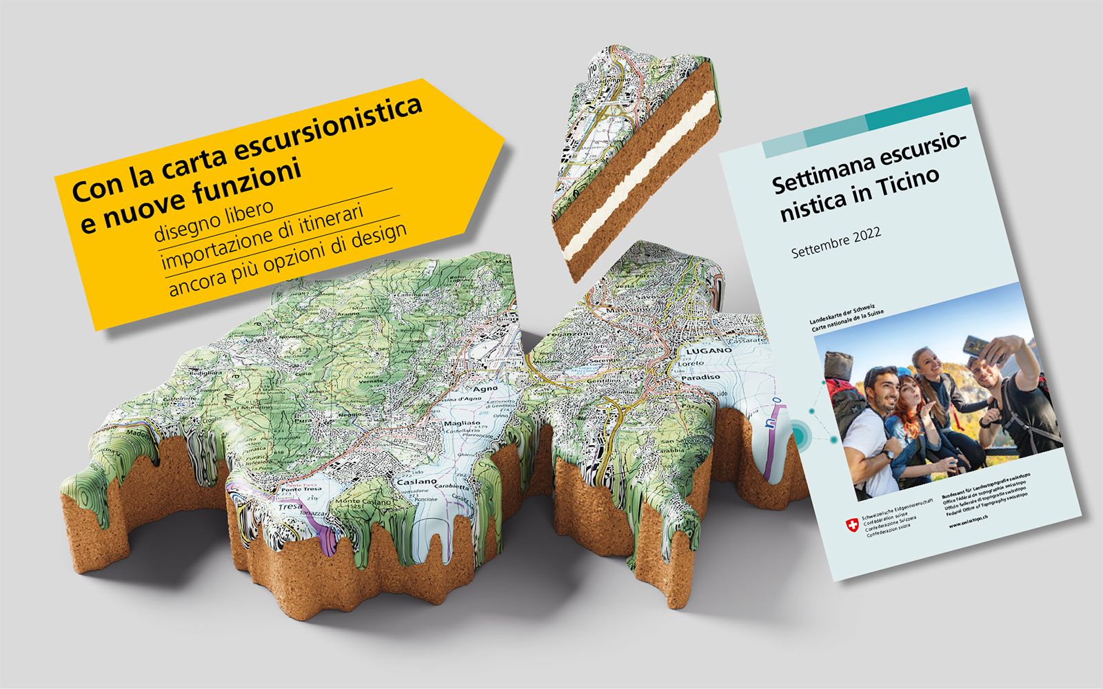 Con mySwissMap swisstopo soddisfa i desideri personali. Chi ordina una carta può scegliere il ritaglio, la scala e il titolo. Per gli amanti dell'outdoor c’è una nuova carta escursionistica. Inoltre, mySwissMap è anche un’ottima idea regalo.
